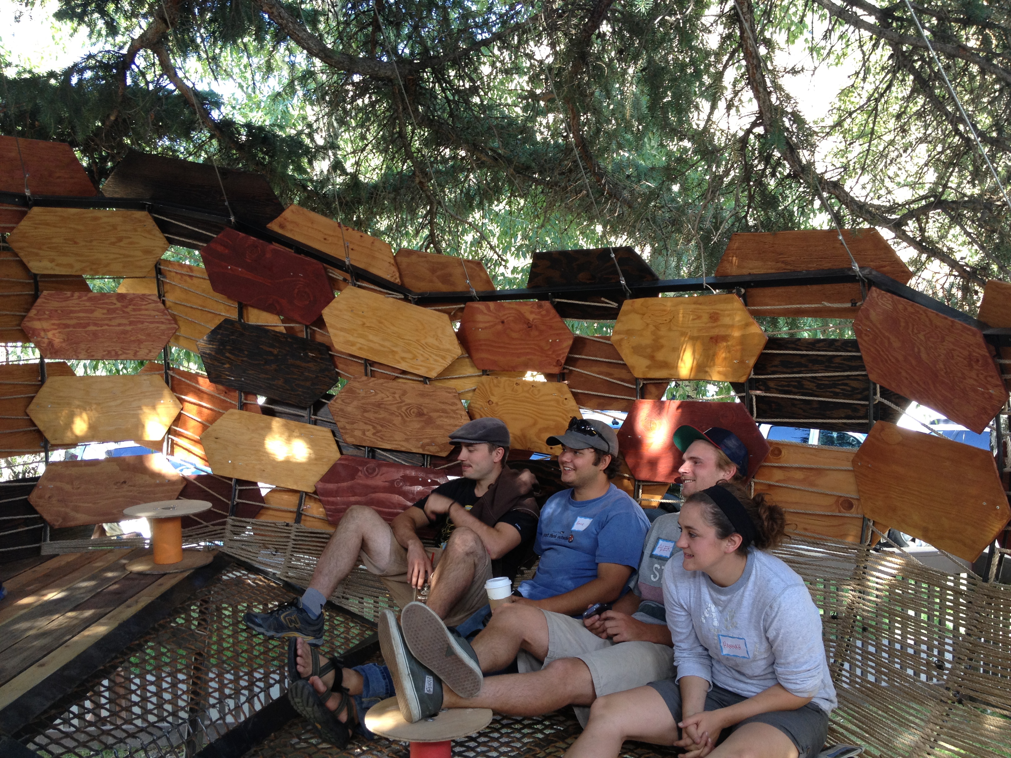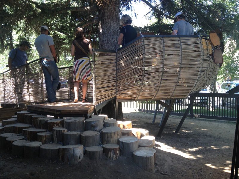 One of the design components for this summer’s Remote Studio was a tree fort. This is one of the coolest forts you can imagine. It is beautiful and fantastical. At the open house the children ran rampant, jumping and screeching as children do. The tree fort and the companion vessel were a hit.