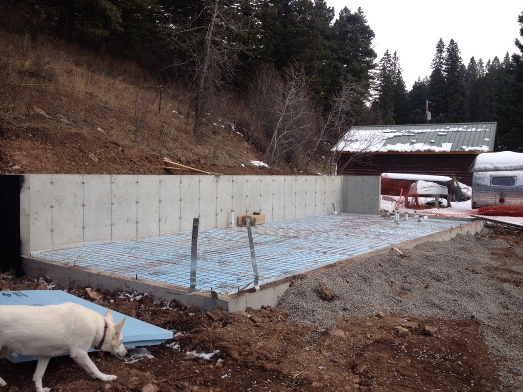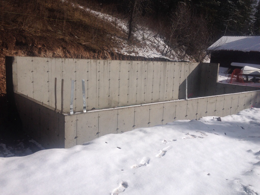 The crew arrived after all the warm spring like days we have had. Winter has returned up the canyon. Form work for foundation walls were set and poured while I sat inside nursing the flu that invaded my body.